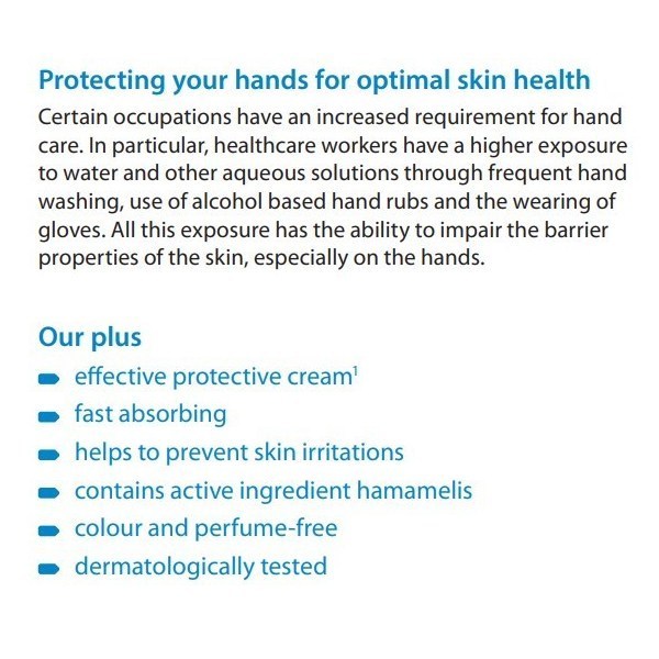 Exposure to frequent hand washing, use of alcohol based hand rubs and the wearing of gloves can impair the barrier properties of the skin, especially on the hands.