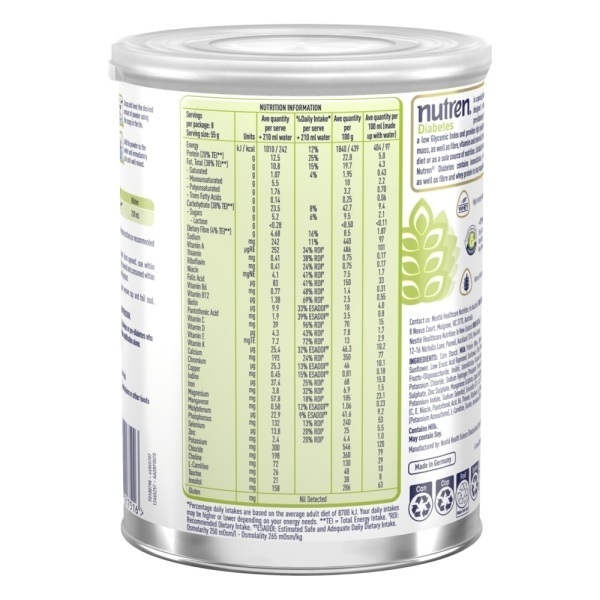 NUTREN Diabetes powder is a low Glycemic Index (GI) nutritional supplement that is made up into a great tasting shake. It provides complete and balanced nutrition without negatively impacting blood sugar levels. Specifically formulated for the dietary management of people with diabetes and pre-diabetes.